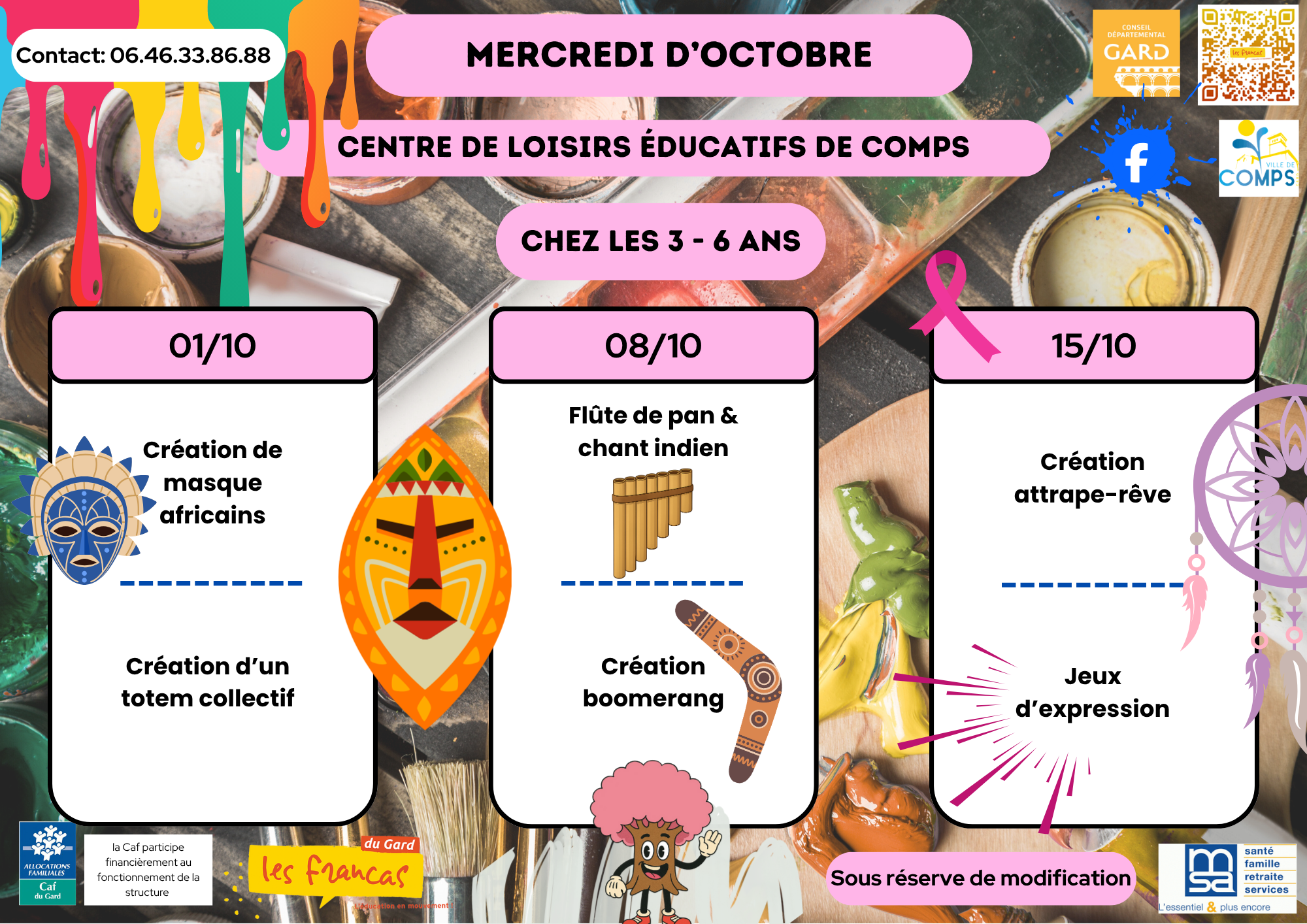 > Pour les enfants de 3-6 ans, le thème Arts et Culture se poursuit, avec la découverte de nouvelles pratiques : création de masques africains, fabrication de flûtes de pan, peinture et découvertes artistiques ludiques.