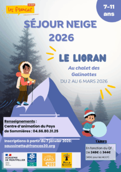 Les centre d’animation du Pays de Sommières vous propose 2 séjours pendant les vacances d’hiver 2026.