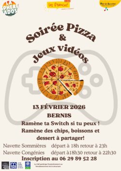 L’espace jeunes de Bernis nous accueille le vendredi 13 février pour une soirée pizza et jeux vidéo. Soirée réservée aux adhérent·es de la sphère ados.