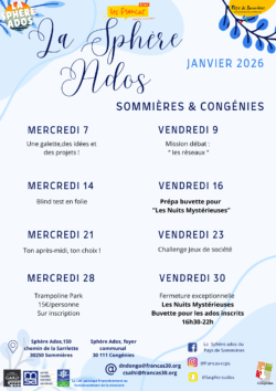 Nous avons le plaisir de vous présenter la programmation de la sphère ados de Sommières et Congénies pendant le mois de janvier :