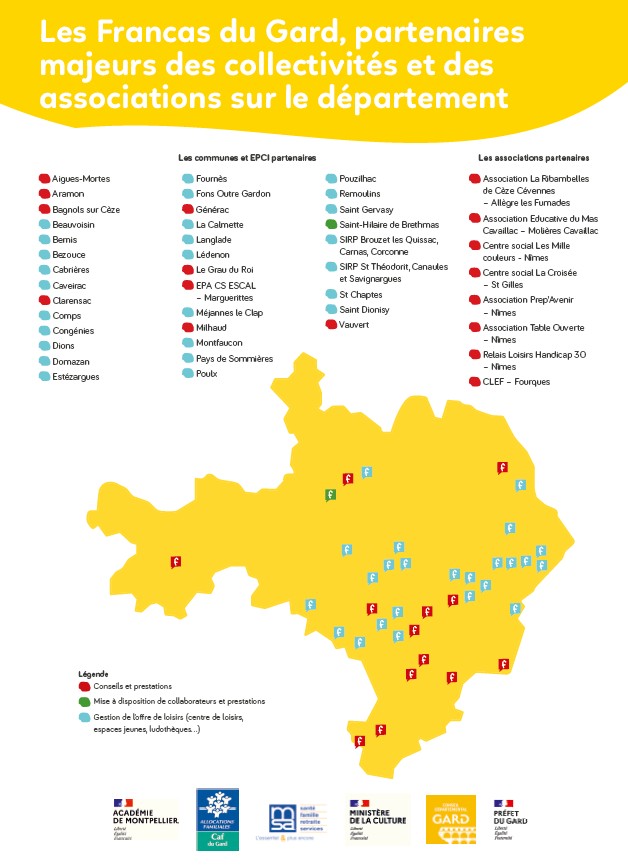 Impliquée dans la vie du département, l’association départementale est reconnue par les pouvoirs publics et par de nombreux organismes sociaux, éducatifs et culturels. Elle répond aux demandes des associations et des collectivités locales qui souhaitent développer des politiques et des actions éducatives et qui sont à la recherche de conseils et de soutien pour mettre en oeuvre leur projet. Membre de la fédération nationale et partie constituante de l’union régionale des Francas, l’association départementale participe aux décisions et aux instances de celles-ci.